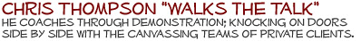 I'm Chris Thompson and I'm the Canvass King. I've owned my own direct sales company and have been where you are right now! In my second year in business, I grew my company from zero in sales to over $2 million a year, mostly on canvassed leads.
